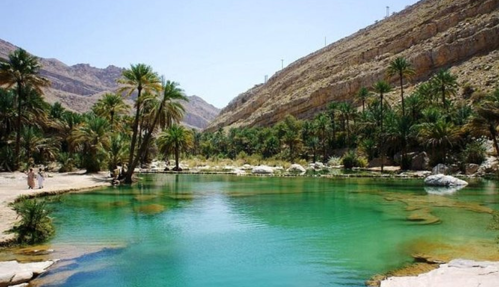 The greatest location to find natural pools to escape the summer heat is Wadi Bani Khalid. One of Oman's most well-known wadis, it draws tourists in with huge emerald green ponds ringed by towering palm trees. Wadi Bani Khalid, in contrast to other wadis that dry up in the summer, has a steady flow of water all year round, providing a cool oasis in the middle of desert surroundings.